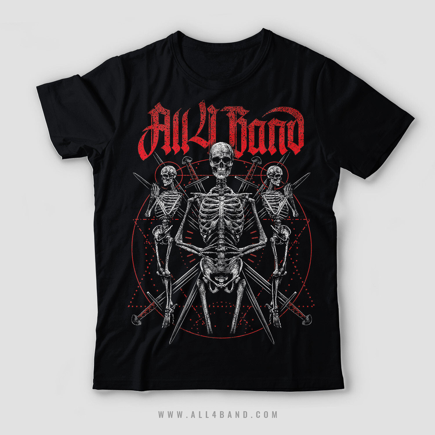 We spend a lot of time creating original band shirt designs based on our concepts and ideas. These designs are available for sale with exclusive rights. You can license them hassle-free and print them on shirts or any other merch.